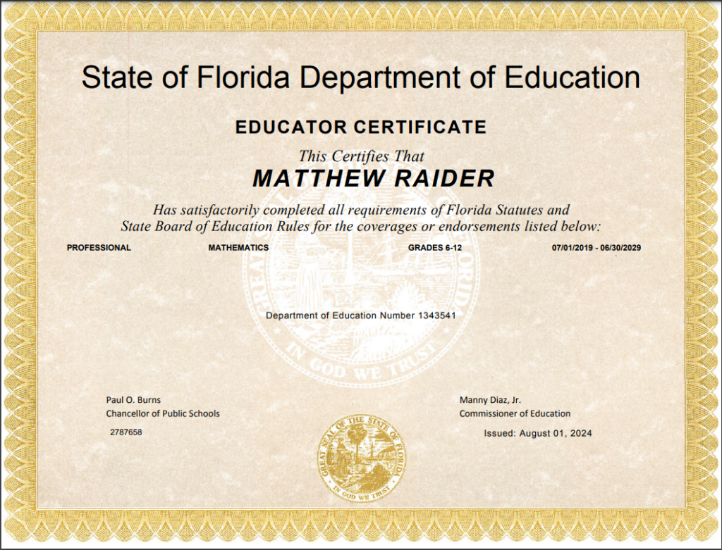 I am Mr. Raider, Founder and Owner of Math Tutor Sebring. If you are in need of a tutor that goes great lengths to help in the world of mathematics you found the best service in the area!